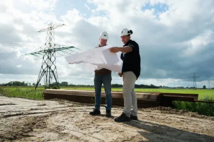 Projecten voor Enexis beginnen met goed kijken en luisteren. Om alle posten voor de calculatie op tafel te krijgen, bezoeken Jeroen en Ronald altijd zelf de werklocatie. Wat is de situatie? Hoeveel ruimte is er? Waar leggen we rijplaten neer? “Alles eromheen bepaalt de kostprijs,” vertelt Ronald. “We besteden veel tijd aan het locatie-specifiek maken van de gestandaardiseerde tekeningen.” Hij geeft een voorbeeld. “Op een in werking zijnde locatie werkten we op 6 meter hoogte met klein materieel, in de nabijheid van een hoogspanningskabel. Door de tekening en werkmethode aan te passen, konden we met kleinere onderdelen werken. Dit brengt extra werkuren met zich mee, maar de veiligheidsrisico’s waren grotendeels geëlimineerd.” Jeroen schetst een apekooi-situatie op een andere locatie. “Onze positie goed innemen kostte extra tijd. We werkten tussen kabels door om de fundatie uit te breiden en een nieuwe transformator te monteren.”