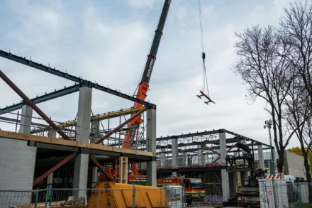Het hoogste punt van het nieuwe deel van het winkelcentrum in Paddepoel is bereikt! Dat vierden we met lekkere snacks voor onze vaklieden en het projectteam. Deze mijlpaal laat zien dat de bouw van het casco goed op weg is.