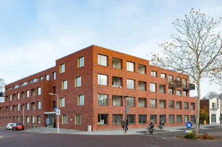 In een flatgebouw van vier woonlagen komen 38 appartementen. Met een vloeroppervlak van circa 50 m2 en één slaapkamer zijn ze vooral geschikt voor een- en tweepersoonshuishoudens. Het gebouw wordt samengesteld uit een palenfundatie, betonwanden, betonvloeren, houtskeletbouw-gevels en aluminium kozijnen. We hebben ingezet op energiebesparing. Een van de redenen waarom het project aan ons is gegund, is dat we de appartementen gasloos gaan bouwen. De benodigde energie wordt opgewekt middels zonnepanelen.