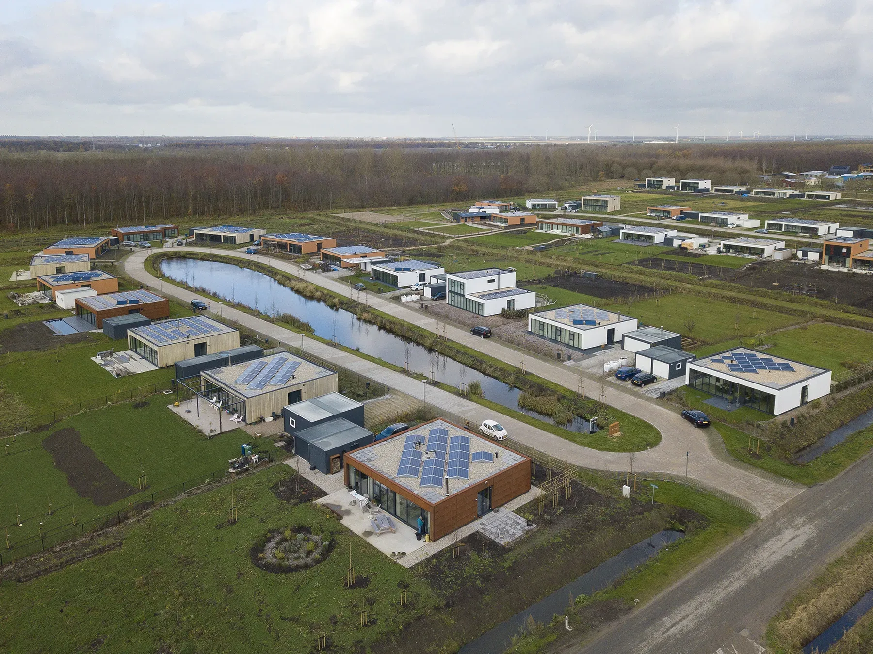 Alle 38 woningen zijn optimaal geïsoleerd en voorzien van warmte- en geluidswerende triple beglazing. Ze krijgen 18 zonnepanelen en zijn daarmee vrijwel energieneutraal; met een aantal extra panelen (optioneel) zijn de woningen zelfs volledig energieneutraal. In plaats van op het riool zijn de woningen aangesloten op een individueel afvalwatersysteem in de hoogste reinigingsklasse. Hierin zorgen bacteriën voor zuivering van het water, dat vervolgens naar een vijverpartij afloopt.