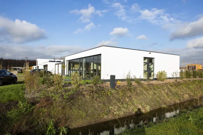 Voor de fundering hebben we gebruik gemaakt van comfortpalen. Een duurzame oplossing, want deze prefab heipalen zijn al tijdens het maakproces voorzien van een warmtewisselaar. Zo kan de aardwarmte worden benut zonder ervoor te hoeven boren. Het is een gesloten systeem dat niet in aanraking komt met het grondwater.