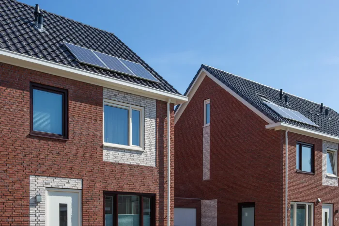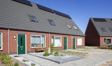 Het skelet van de woning bestaat uit kanaalplaatvloeren en dragende wanden van kalkzandsteen. Niet alle woningen worden exact hetzelfde. Zo bouwen we twee-onder-een-kap woningen, deze krijgen een prefab houtskeletbouw kap. Een aantal andere woningen krijgt een plat dak. We zorgen ervoor dat we bij alle woningen onder de energieprestatiecoëfficiënt (EPC) van 0,4 blijven. Dit doen we onder andere door zonnepanelen te plaatsen.