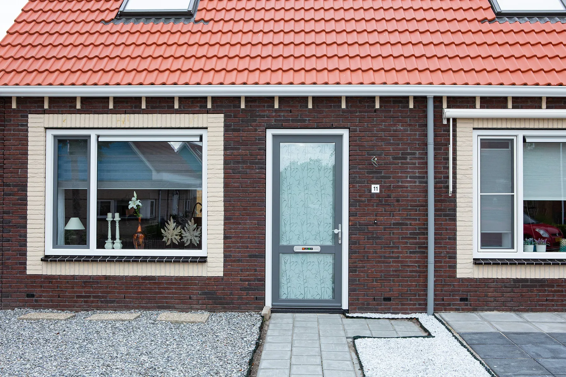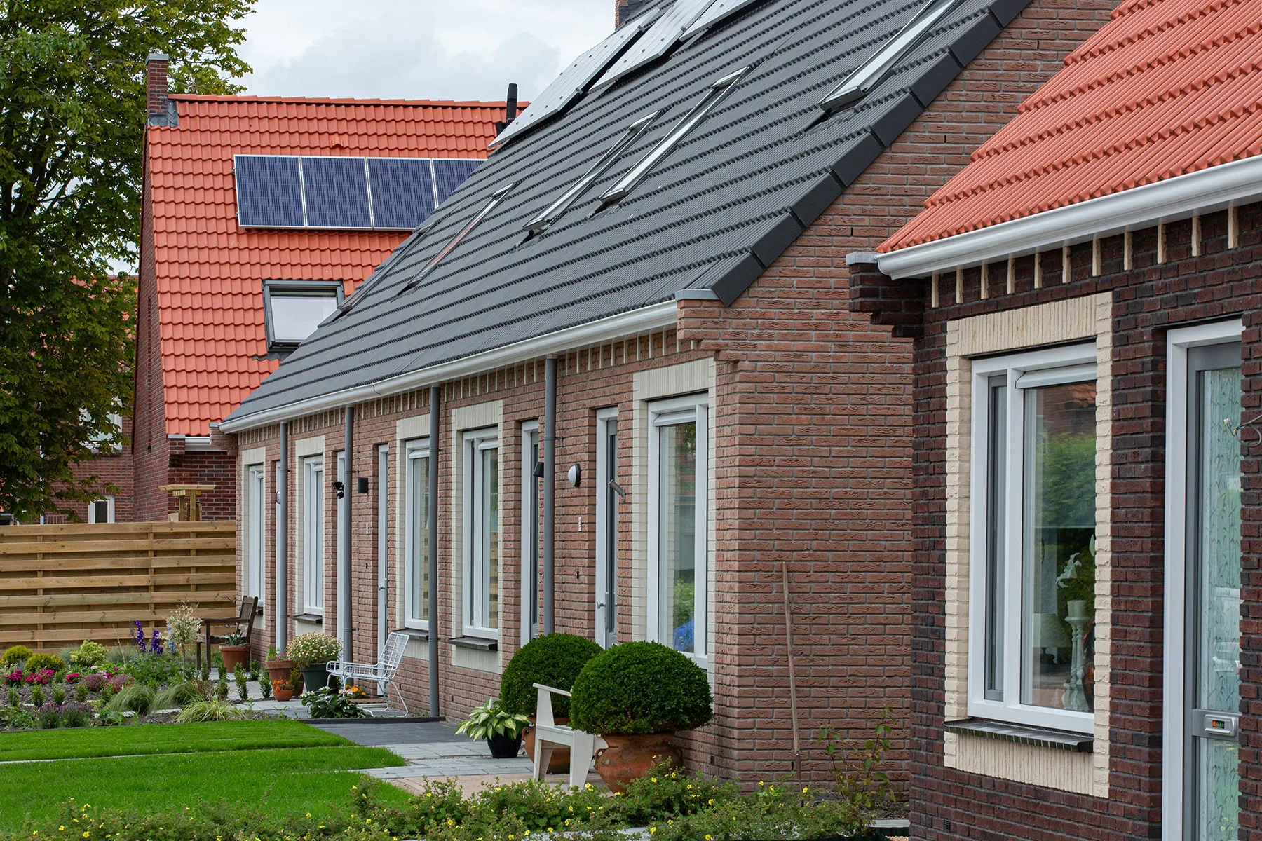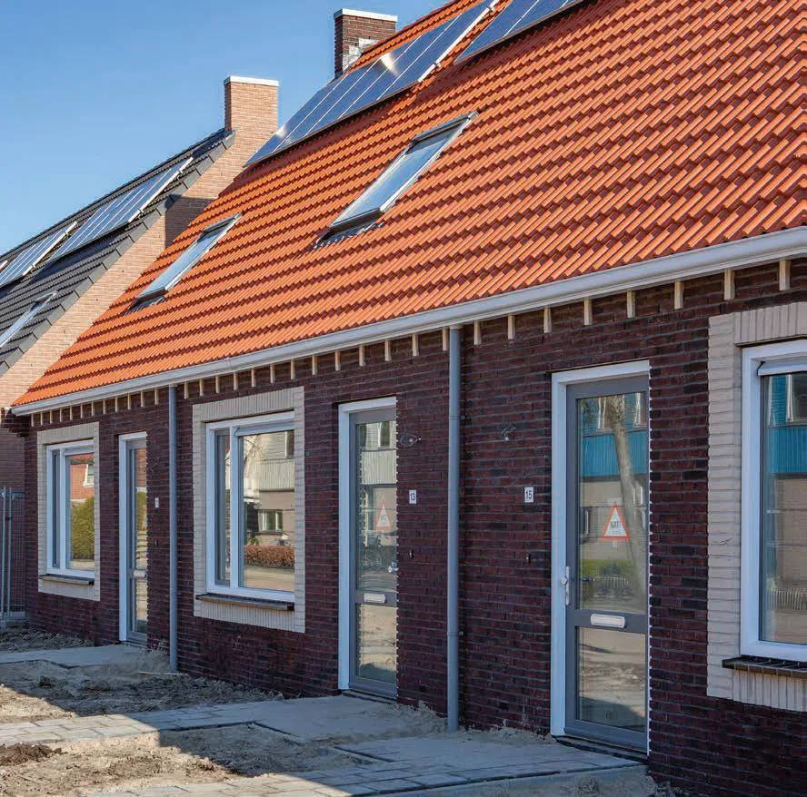De wijk waar de woningen worden gebouwd – in het zuidwestelijke deel van Dokkum – wordt geherstructureerd. De oude woningen hebben we gesloopt. In het voortraject van de bouw zorgen wij voor de omgevingsvergunningen en het tekenwerk. We hebben het basisontwerp van onze woninglijn voorzien van een aantal speelse en herkenbare elementen, waaronder ‘klossen’ onder de dakgoten, die worden uitgevoerd in een andere kleur metselwerk.