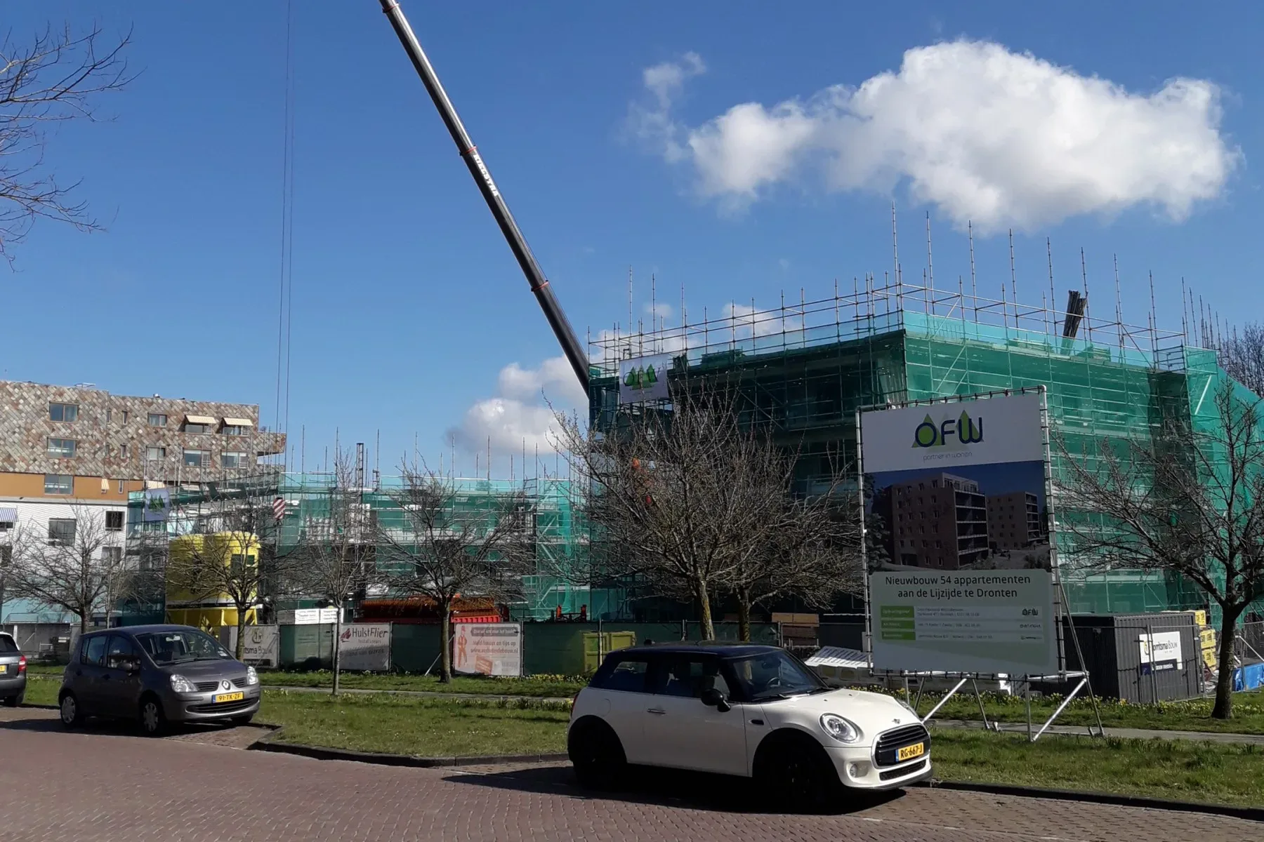 De omwonenden van de bouwlocatie houden we op de hoogte van de geplande werkzaamheden. De overlast voor de buurt is beheersbaar. Het bouwverkeer verdwijnt al snel het terrein op. Parkeren doen we op ruime locaties buiten het bouwterrein. De aparte aanvoerroute zorgt ervoor dat we niemand in de weg zitten. De bouwplaats is wel behoorlijk krap. Daarom laten we materialen zoveel mogelijk just-in-time leveren. Logistiek vergt dat de nodige organisatie en afstemming, maar wij hebben de ervaring om dat goed te managen. Afstemming is hier de sleutel tot succes. Daardoor ontstaat een vertrouwen en een goede samenwerking. Ook de inrichting van de bouworganisatie, een duidelijke planning en duidelijkheid over risico’s en besluitvorming bij. ‘Wat bûge kin sil net brekke’, zeggen we in het Fries. Oftewel: wij zijn flexibel en denken voor de volle 100% mee. Openheid van zaken zorgt voor een oplossingsgericht resultaat.