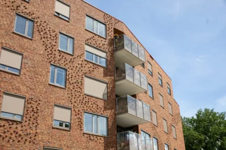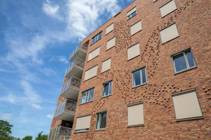 De patronen in de gevel, met het metselwerk dat op sommige plekken lichter oogt, geven het gebouw een eigenzinnig karakter. De uitkragende stenen zorgen voor contrast. Esthetische ideeën van de architect die vroegtijdig voorbereid en die wij qua maatvoering hebben afgestemd met alle partijen. Elke bouwlaag realiseren we in 16 dagen; hierbij maken we een opsplitsing in het storten van de vloer en het zetten van de kalkzandsteen muren. De ruwbouw neemt in totaal ongeveer een half jaar in beslag. Dankzij een goed plan van aanpak wordt de doordachte planning tot op de dag gehaald. En we weten dat wanneer het tempo wordt gehaald, zowel werkplezier als kwaliteit verbeteren.