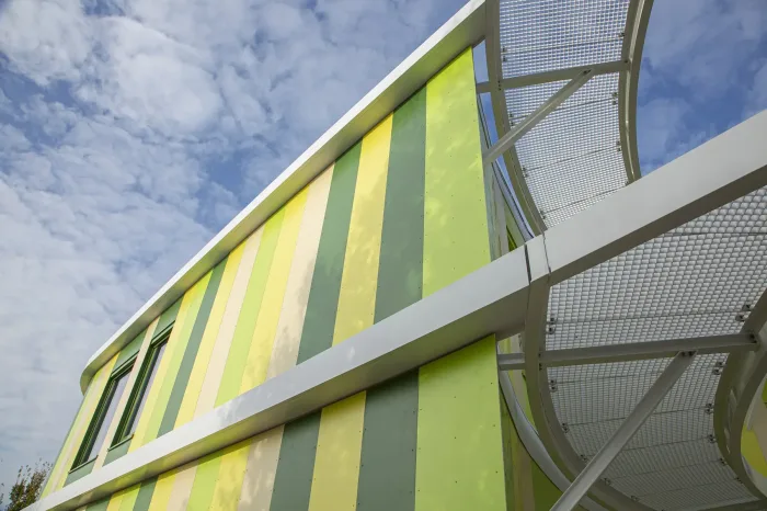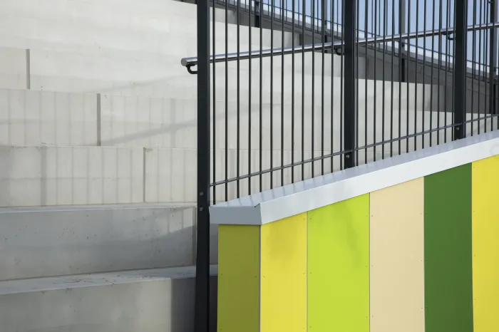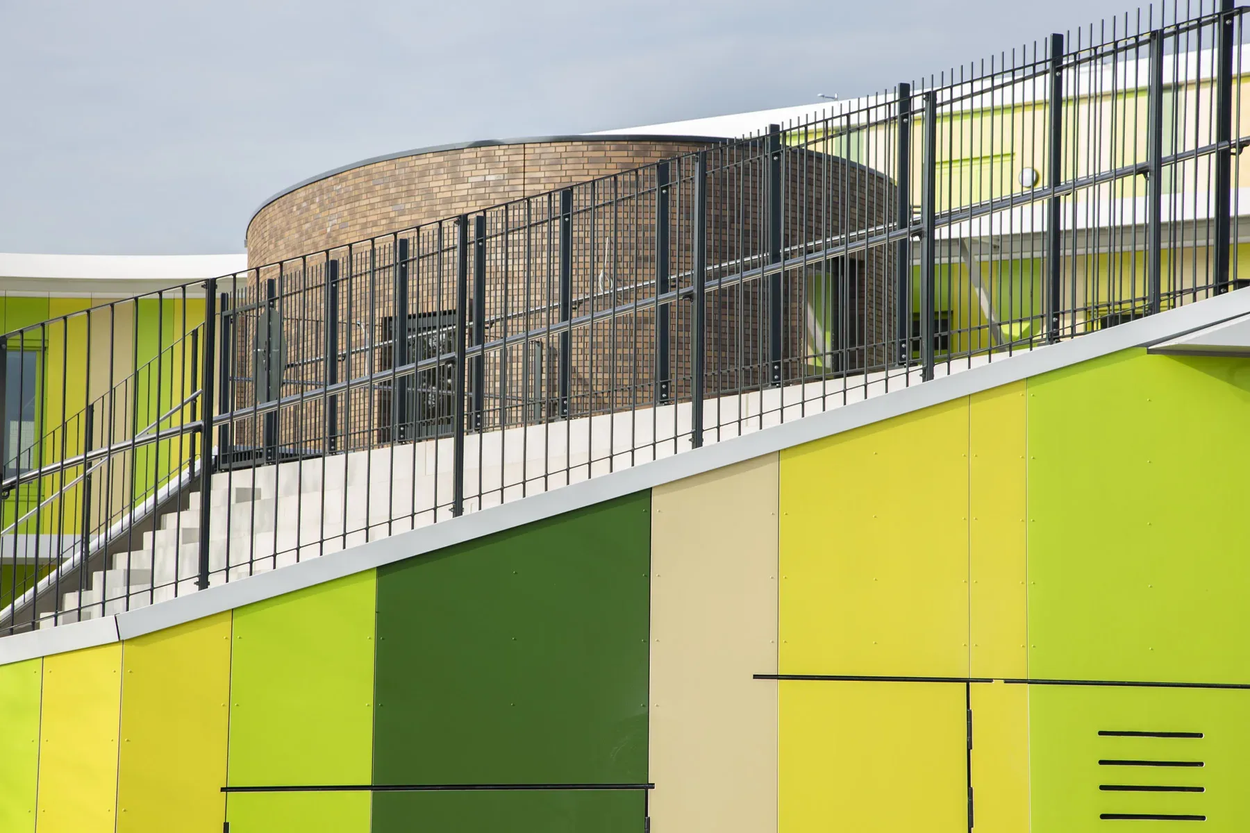 Midden in het gebouw heeft de architect een glijbaan voorzien, een speelse toevoeging aan het gebouw. Vanuit een eerder project weten we dat hiervoor zeer strenge eisen gelden. In het voortraject hebben we daarom samen met de architect en de constructeur nog een extra check gedaan om er zeker van te zijn dat de glijbaan veilig kan worden gebruikt.