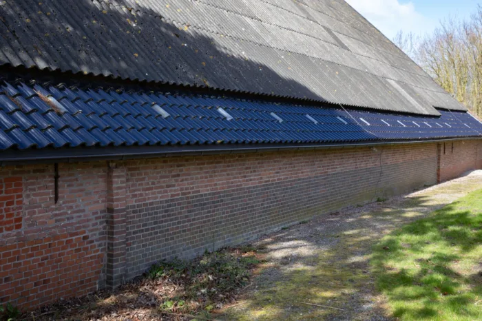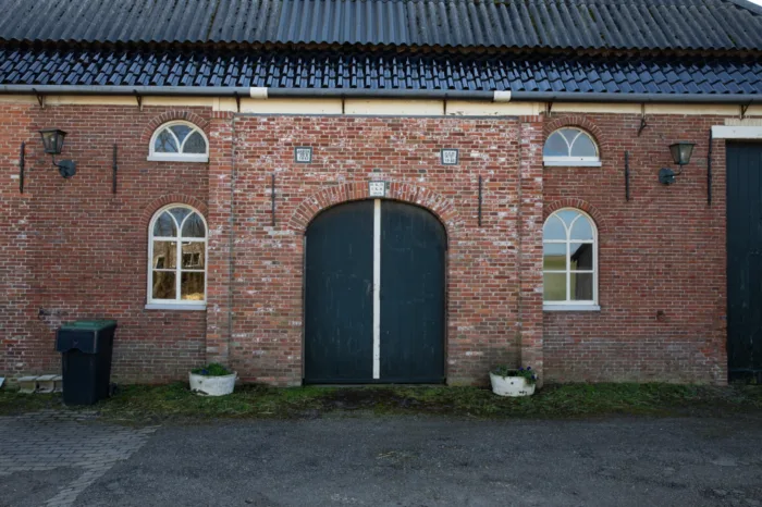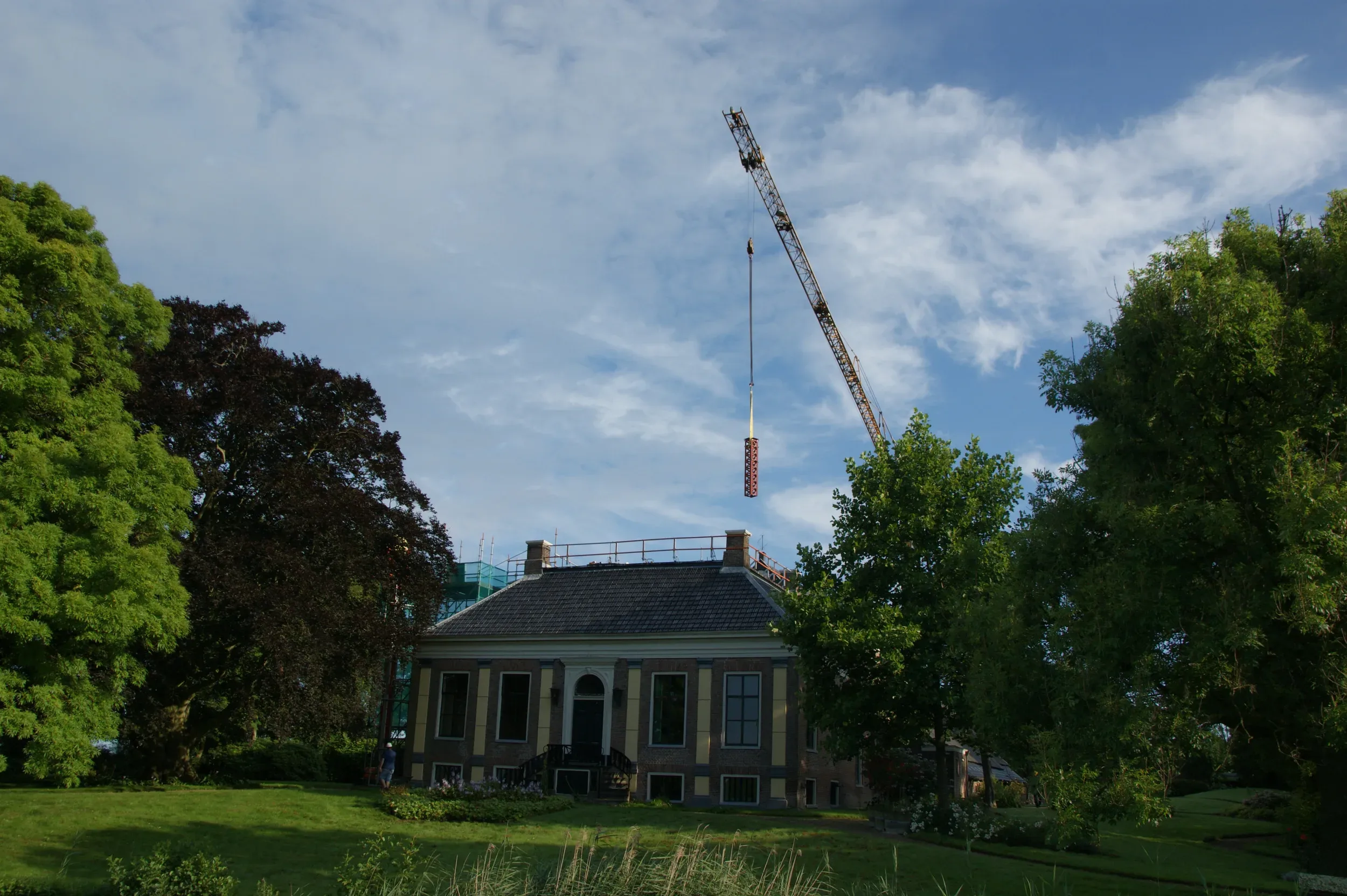 Van de naastgelegen arbeiderswoning die bij de boerderij hoort is de schoorsteen zorgvuldig gedemonteerd. Met de originele stenen is vervolgens een nieuwe schoorsteen gebouwd.