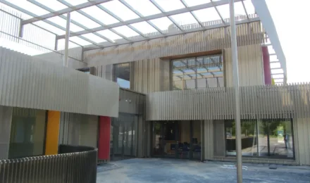 Het was nog even een klus om de larixhouten spanten, de staalconstructie, het dak en de overspanningen bij elkaar te krijgen. Daar zijn we met elkaar goed in geslaagd. Het fraaie gevelmetselwerk heeft een aardig detail: het Elfstedenkruisje komt erin terug in de vorm van prefab betonelementjes.