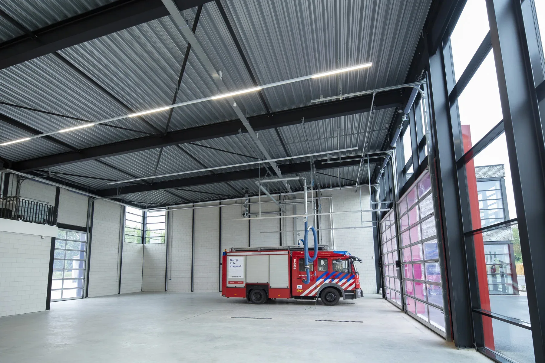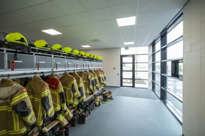 In het gebouw werken vier verschillende hulpverlenende organisaties naast elkaar. Dat maakt het een bijzonder gebouw en brengt ook complexiteit mee. Elke gebruiker had zijn eigen wensen. Denk aan een ‘ophoudcel’ waar de politie aangehouden personen in kan onderbrengen en de opstelplaatsen voor twee ambulances. Ook een ruimte waar medicijnen veilig kunnen worden opgeborgen en extra waterbuffers voor de brandweer behoorden tot de wensen. Een speciale installatie om afvoergassen van draaiende motoren af te zuigen wordt automatisch afgekoppeld als de brandweerauto uitrijdt. Een slimme, besparende voorziening voor die gevallen waarin elke seconde telt.