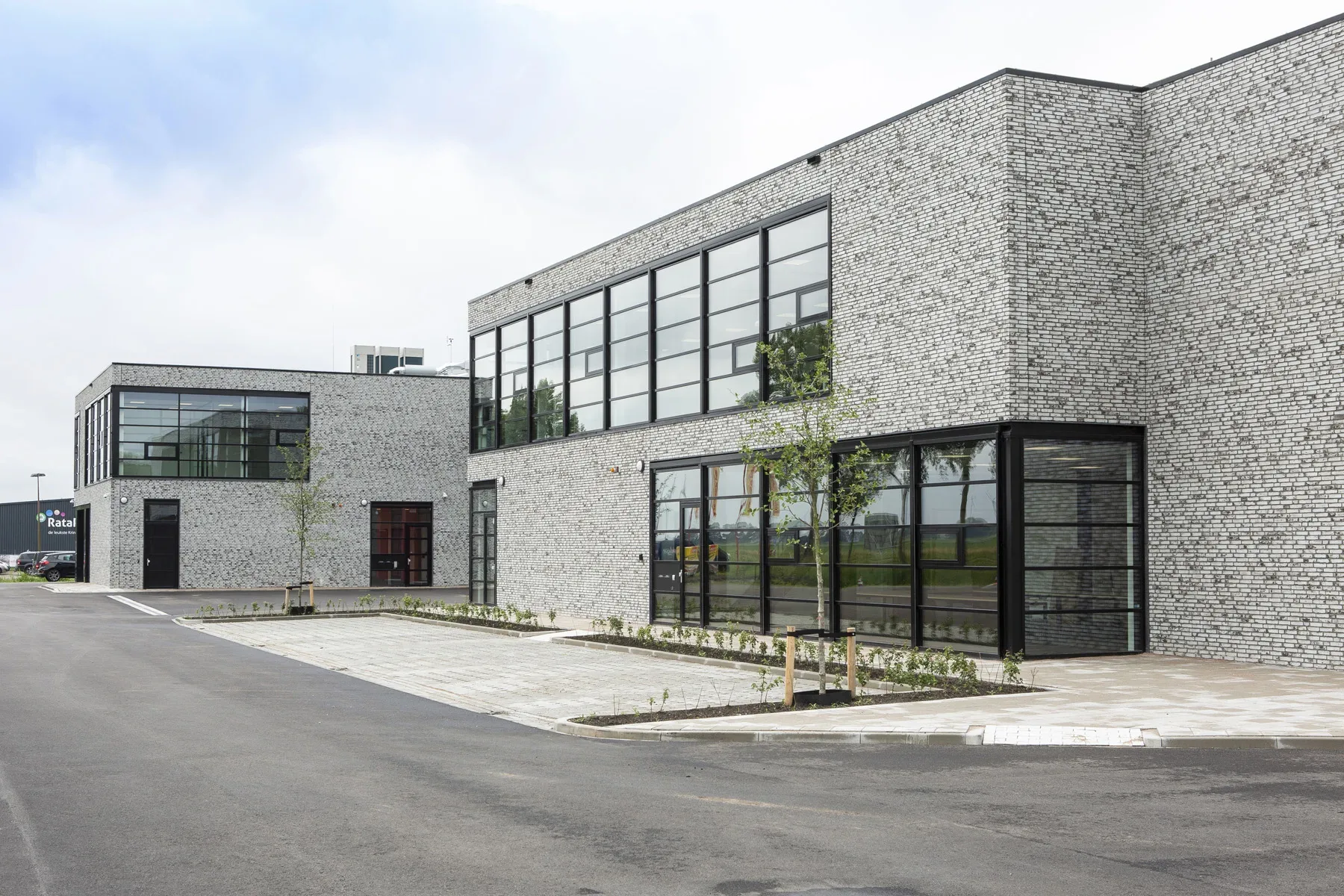 De terreininrichter is kort na ons gestart met de werkzaamheden. Een slimme zet van de opdrachtgever, dan hoefde de ingebruikname van het gebouw daar niet op te wachten. Het vergde wel de nodige afstemming om het voor alle partijen een werkbaar proces te houden. Ons werk raakte elkaar letterlijk op verschillende vlakken. We hebben ons goed op elkaar aangepast, en gaven wederzijds duidelijk aan wanneer we waar bezig waren. Door parkeerplekken slim in te richten en keten praktisch te plaatsen was er logistiek al veel opgelost. Asfalteren gebeurde in fases, wij stemden ons transport daar op af. Door goede onderlinge communicatie bleven zowel de terreininrichter als wij op schema.
