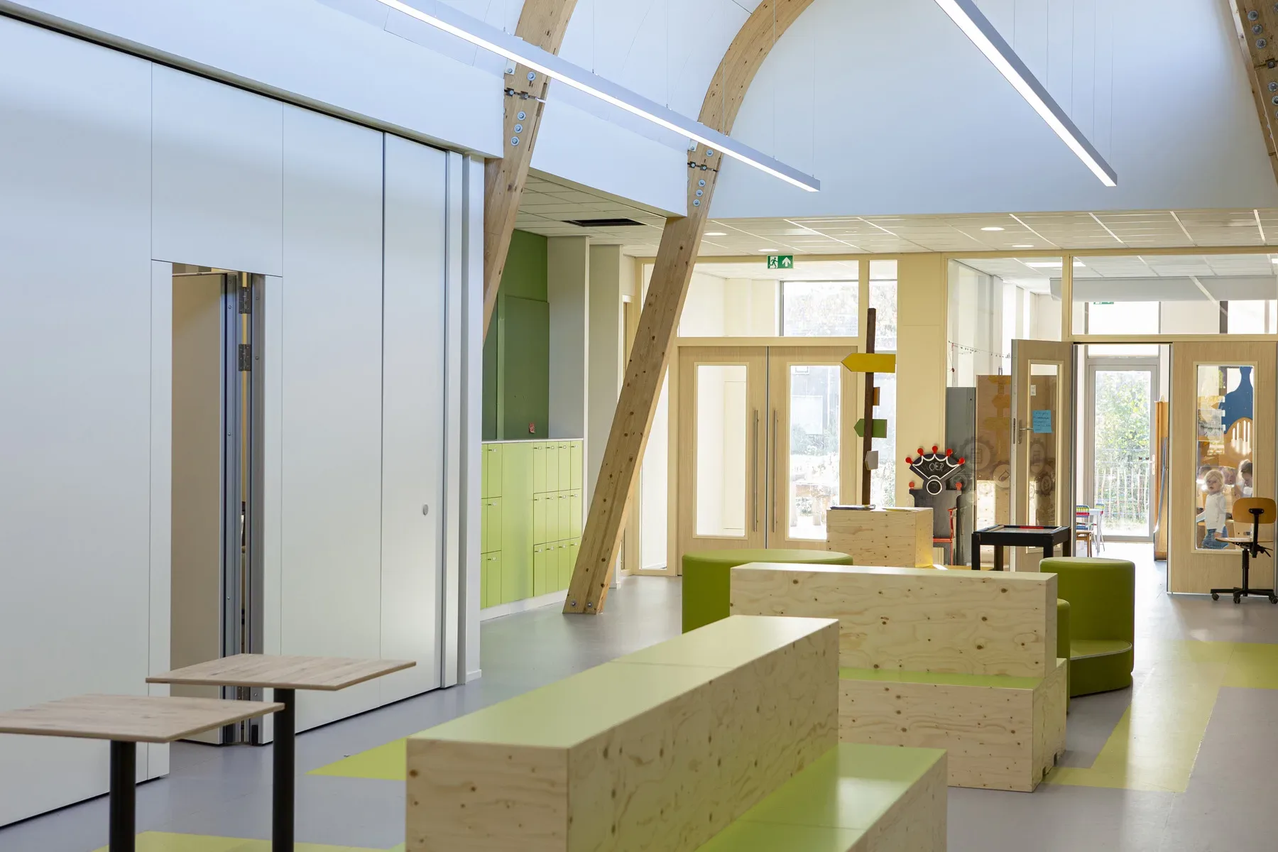 Deze bevingsbestendige en gasloze gebouwen hebben een schil die kan meebewegen in geval van aardbevingen. Er zijn 75 stalen kolommen geplaatst die gezamenlijk met de vloeren een bevingsbestendig geheel vormen. De staalconstructie is verzonken en verstevigd met windverbanden. Zo krijgen kinderopvang en onderwijs een veilig gebouw. Ze hoeven bovendien minder geld uit te geven aan hun energierekening, zodat er meer overblijft voor het onderwijs.