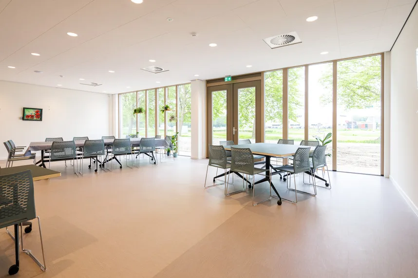 Om geluidsoverlast te voorkomen, hebben we een innovatieve oplossing toegepast voor de repetitieruimte van de lokale muziekvereniging. Hoewel het op het eerste gezicht niet zo lijkt, is deze ruimte constructief losgekoppeld van de rest van het gebouw. Dankzij een zelfstandige fundering en minimale contactpunten met het MFC worden geluidstrillingen niet via de bouwconstructie doorgegeven aan de bovenliggende woningen. In combinatie met hoogwaardige geluidsisolatie zorgt dit ervoor dat bewoners geen hinder ondervinden van de muziek, terwijl de muzikanten ongestoord kunnen repeteren.