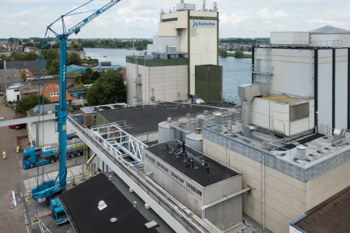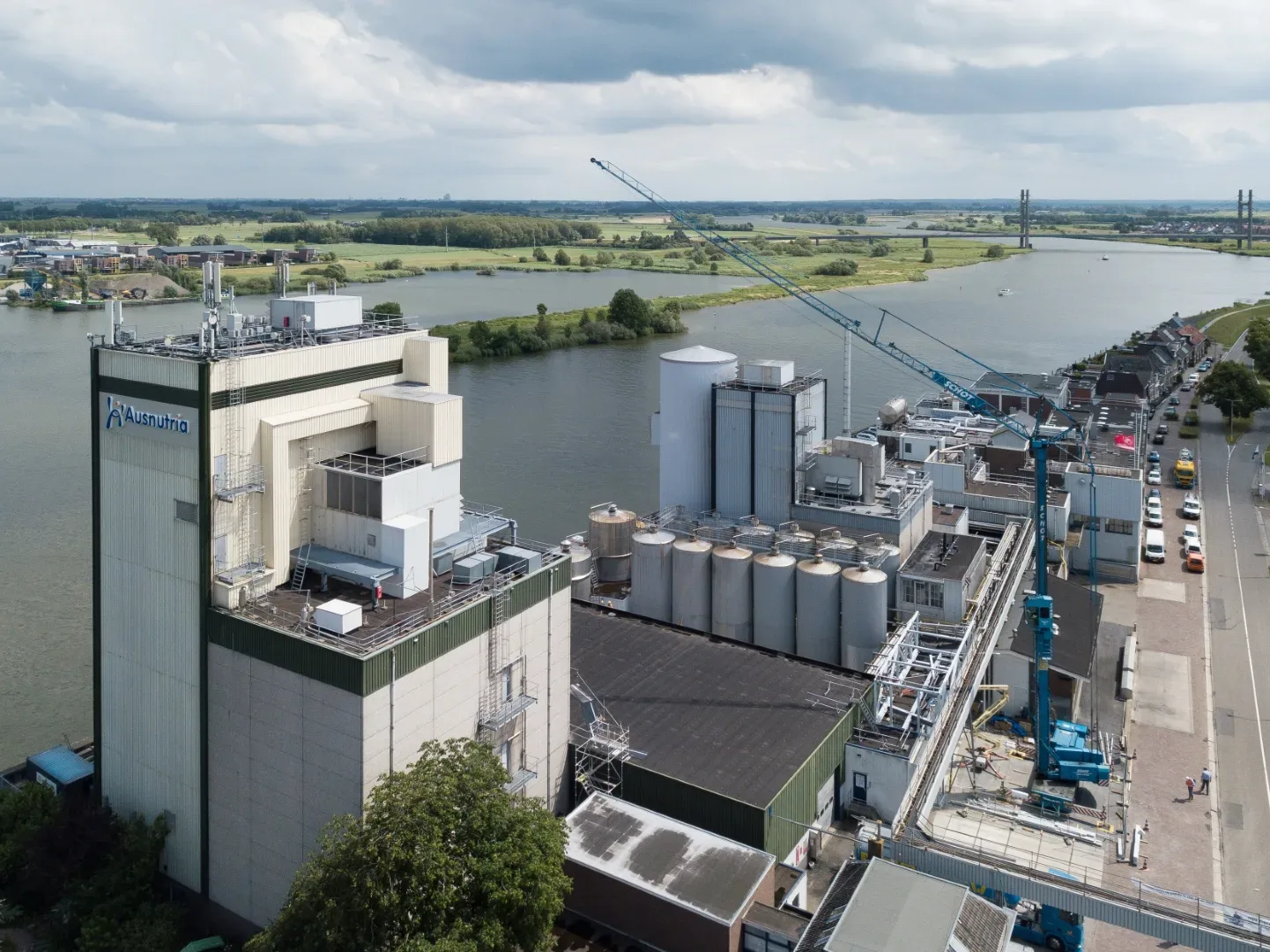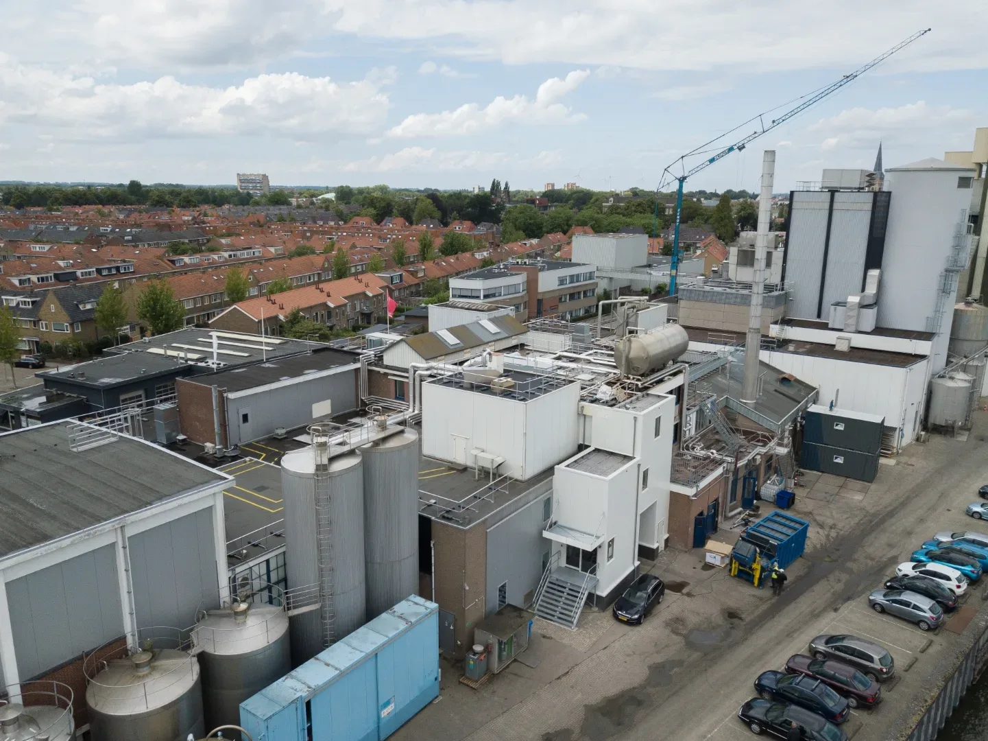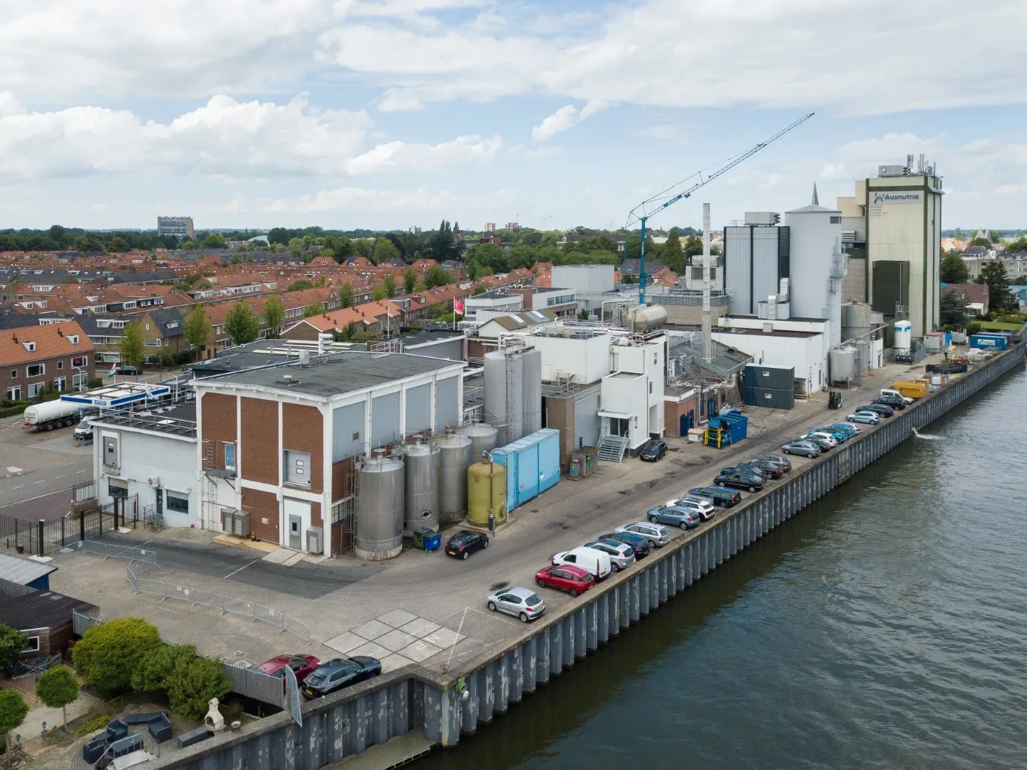 De melkpoederfabriek in Kampen ligt ingesloten tussen de IJssel en een woonwijk. We hadden enerzijds te maken met restricties vanuit het waterschap – we mochten bijvoorbeeld geen kraan plaatsen op de kade. Anderzijds was het onze zorg dat de omwonenden zo min mogelijk overlast van onze werkzaamheden zouden ondervinden. Dit laatste hebben we onder meer opgelost door voor acht uur ’s ochtends geen transport- en kraanbewegingen uit te voeren. Onze medewerkers parkeerden buiten de wijk en gingen vervolgens met een pendelbusje naar de fabriek.