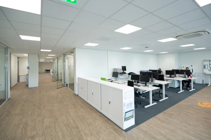 In de voormalige Lypack-fabriek op industrieterrein De Zwette in Leeuwarden worden in Kampen geproduceerde poeders gemengd, verpakt en klaargemaakt voor distributie naar klanten. Aangezien Ausnutria haar producten over de hele wereld exporteert, moet dit proces voldoen aan alle eisen van de verschillende inspectiediensten. Het internationale zuivelconcern vond in ons een betrouwbare regiepartner om het gebouw toekomstbestendig te maken.