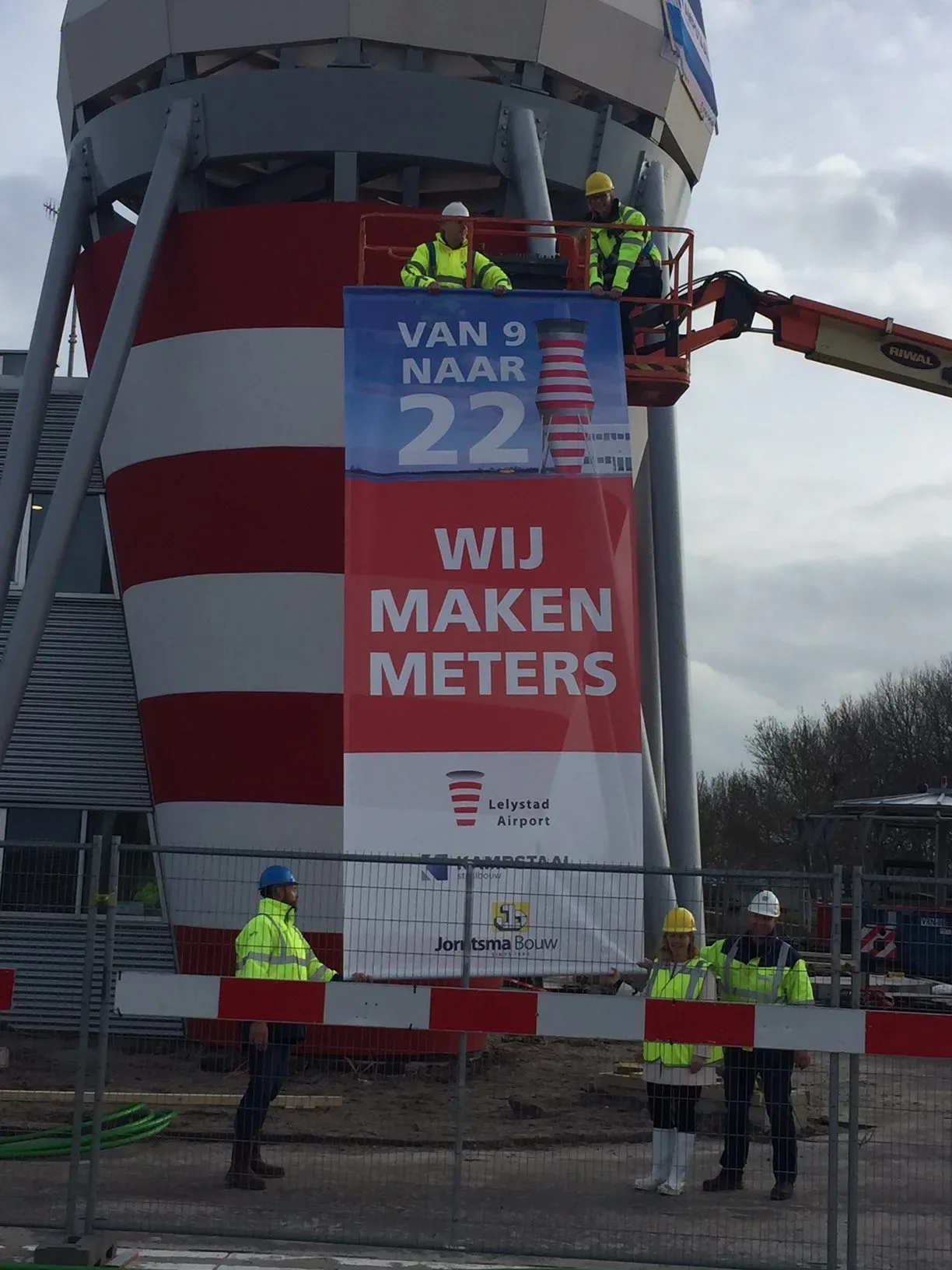 Omdat de toren van binnen klein is en er verschillende partijen tegelijk aan de slag moeten, stemmen we elke ochtend alle werkzaamheden met elkaar af. De verbouwing van de verkeerstoren van Lelystad Airport is opgeleverd. In samenwerking met Kampstaal staalbouw en Wouda Installatietechniek hebben we de verhoging van de verkeerstoren gerealiseerd.