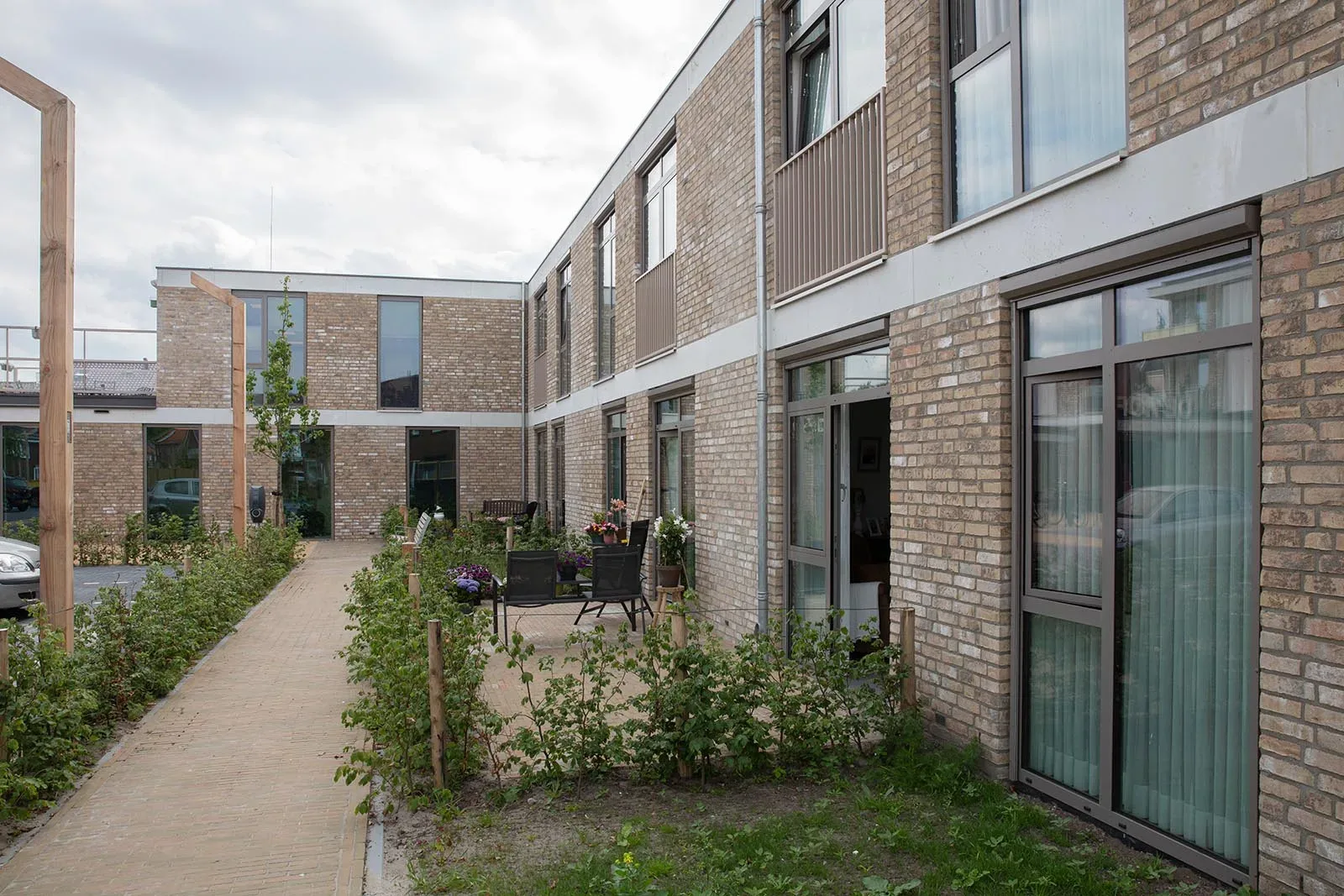 Het wooncomplex past precies tussen de reeds aanwezige bebouwing en wegen. Daardoor is de ruimte op de bouwplaats beperkt. ‘Bouwen op een postzegel’ kun je het noemen. Door die beperkte ruimte zijn logistiek en planning cruciaal. Vanwege de bronboringen op het binnenterrein konden puinwegen nog niet direct worden aangelegd en was er nog geen plek voor het ketenpark. Bovendien wordt op vrijwel het hele terrein gebouwd. Het woonzorgcomplex bestaat uit twee gebouwen aan weerszijden van het terrein die met elkaar worden verbonden door een tussengebouw. Aan de gebouwen wordt tegelijkertijd gewerkt. Om ruimte te winnen zijn een voetpad en parkeerplaatsen alvast in gebruik genomen voor bouwmaterialen. Later worden deze onderdeel van de infrastructuur.