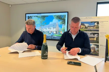 We mogen nog meer bouwen in Uithuizen! Ook aan de J. F. Kennedylaan en de schoollocatie gaan we aan de slag met de bouw van 17 nieuwbouwwoningen. Harry Oosting, directeur van woningstichting Goud Wonen en onze directeur wonen Henk Rozema tekenden de overeenkomst.