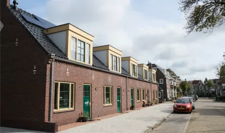 De poorten en het metselwerk met ruitvormige elementen en witte stenen zijn geïnspireerd op het originele ontwerp van Bloemwijk. Samen met onze vaste onderaannemers vonden we de juiste materialen en vakmensen. Niet alleen voor de realisatie van het ontwerp, maar ook voor het behalen van de (Europese) richtlijnen voor duurzame woningen. We pasten onder andere geperste petflessen toe als isolatiemateriaal. René is trots op de combinatie van cultuurhistorische elementen en duurzame materialen. “In overleg met de bewoners hebben we alle ramen voorzien van sfeervolle kruisroedes. Dat levert meer schilderwerk op, maar is ook bepalend voor het nostalgische gevoel. Ik denk dat het oude hart van Bloemwijk weer terug is.”