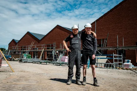 Timmeren leer je in de praktijk. Zien hoe de leermeester het doet en het dan zelf proberen. Op veel van onze bouwplaatsen zijn daarom BBL-leerlingen aan het werk. Zij gaan 1 dag per week naar school en werken vier dagen mee in de praktijk. In Delfzijl-Noord leert timmerman Raymond Schoonbeek de 17-jarige Dylan de Vries de kneepjes van het vak. Samen werken ze aan nieuwe zorgstudio’s en zorgwoningen voor Cosis en Zonnehuisgroep Noord.